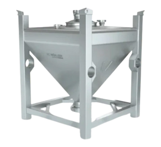 Specifically developed to meet the stringent requirements of the pharmaceutical industry, these containers are now equally valued in the chemical and food industries. They offer excellent emptying performance and residue-free cleaning, thanks to butt-welded and smoothly finished seams. The Type 60, 90, and AS variants are equipped with patented MC stainless steel valves featuring an ergonomic hand lever and user-friendly closing system, ensuring quick assembly and effortless handling.